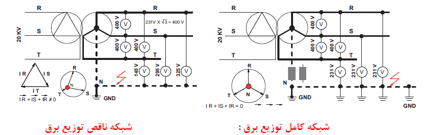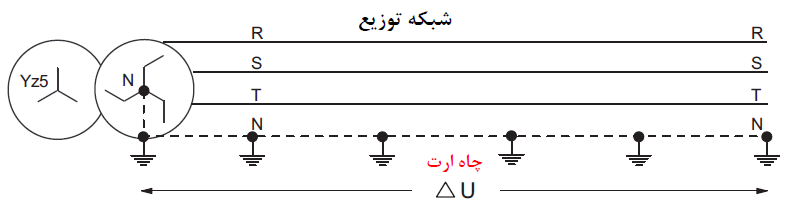 در ﺷﺒﻜﻪ ﻛﺎﻣﻞ ﺗﻮزﻳﻊ ﻛﻨﻨﺪه ﺑﺎﻳﺪ در ﻫﺮاﻧﺸﻌﺎب ﺑﺨﺎﻃﺮ ﺟﻠﻮﮔﻴﺮي از ﺧﺴﺎرت و ﺳﻮاﻧﺢ و ازدﻳﺎد وﻟﺘﺎژ و دو ﻓﺎز ﺷﺪن ﻣﺪار ﻣﺼﺮف ﻛﻨﻨﺪه ﻣﺠﺪدا ﻧﻮل ﺧﻮد را ﺑﻪ ﭼﺎه ارت ﻣﺘﺼﻞ ﻧﻤﺎﻳﺪ.