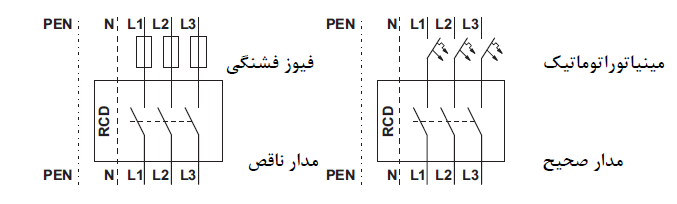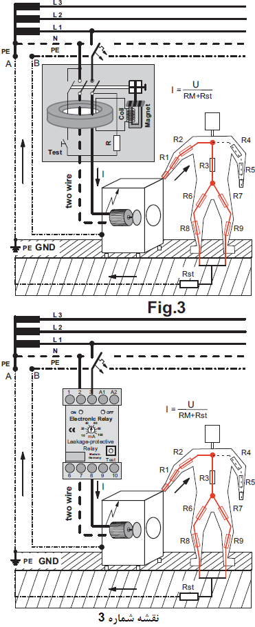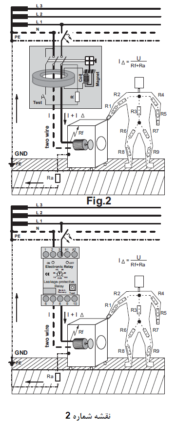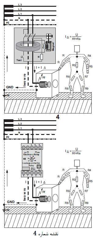 ﻫﺮﮔﺰ ﻧﺒﺎﻳﺪ ﻓﺮاﻣﻮش ﻛﺮد ﻛﻪ اﮔﺮ ﺑﺪن اﻧﺴﺎن ﻣﺎﺑﻴﻦ ﻓﺎز و ﻧﻮل ﻛﻪ اﺣﺘﻤﺎل اﺗّﻔﺎق اﻓﺘﺎدن آن ﻧﻴﺰ ﻣﻲ ﺑﺎﺷﺪ ﻗﺮار ﺑﮕﻴﺮد اﻳﻦ ﻧﻮع رﻟﻪ ﻫﺎ ﺟﺮﻳﺎن ﺑﺮق را ﻗﻄﻊ ﻧﻤﻲ ﻛﻨﻨﺪ و ﺧﻄﺮات ﻣﺮگ ﺣﺘﻤﻲ اﺳﺖ ﻣﮕﺮ در ﻣﻮاﻗﻌﻲ ﻛﻪ ﺟﺮﻳﺎﻧﻲ ﻫﻢ از ﺑﺪن اﻧﺴﺎن ﺑﻪ زﻣﻴﻦ ﺑﺮﻗﺮار ﮔﺮدﻳﺪه ﺑﺎﺷﺪ و ﺑﺨﺎﻃﺮ ﻫﻤﻴﻦ ﻣﻮﺿﻮع ﺑﻪ آﻧﻬﺎ Earth Leakage – protective Relay و ﻳﺎ RCD ﻫﻢ ﻣﻲ ﮔﻮﻳﻨﺪ.