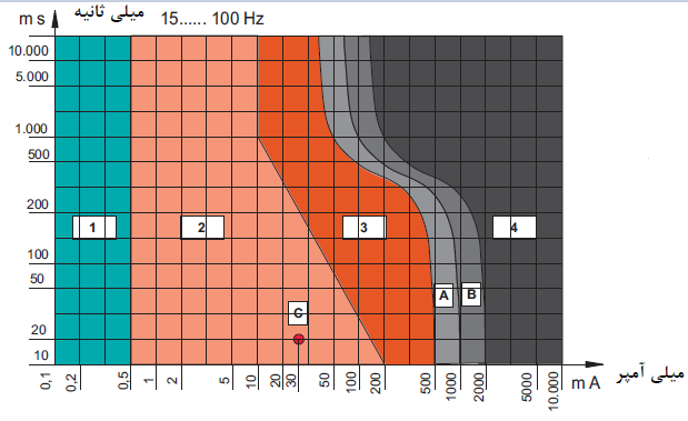 ﻃﺒﻖ آزﻣﺎﻳﺸﺎت و ﺗﺤﻘﻴﻘﺎت اﻧﺠﺎم ﮔﺮﻓﺘﻪ ﻣﻘﺪار ﺟﺮﻳﺎن ﻋﺒﻮري از ﺑﺪن اﻧﺴﺎن ﺗﺎ رﻫﺎ ﻛﺮدن ﺳﻴﻢ ﺑﺮق و ﻗﻄﻊ ﺟﺮﻳﺎن در اﻳﻦ ﺷﻜﻞ ﺑﻪ ﭼﻬﺎر ﺑﺨﺶ ﺗﻘﺴﻴﻢ ﺷﺪه اﺳﺖ.