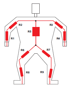 ﺳﺎﺧﺘﻤﺎن ﺑﺪن اﻧﺴﺎن و ﻫﺮ ﺟﺎﻧﻮر زﻧﺪه در ﻣﻘﺎﺑﻞ ﺟﺮﻳﺎن ﺑﺮق از ﻣﻘﺎوﻣﺖ ﻫﺎي زﻳﺎدي ﺗﺸﻜﻴﻞ ﺷﺪه اﺳﺖ ﻛﻪ ﺑﻄﻮر ﺳﺎده ﻣﻲ ﺗﻮان ﺑﺪﻳﻦ ﺷﻜﻞ ﻧﻤﻮدار ﻧﻤﻮد